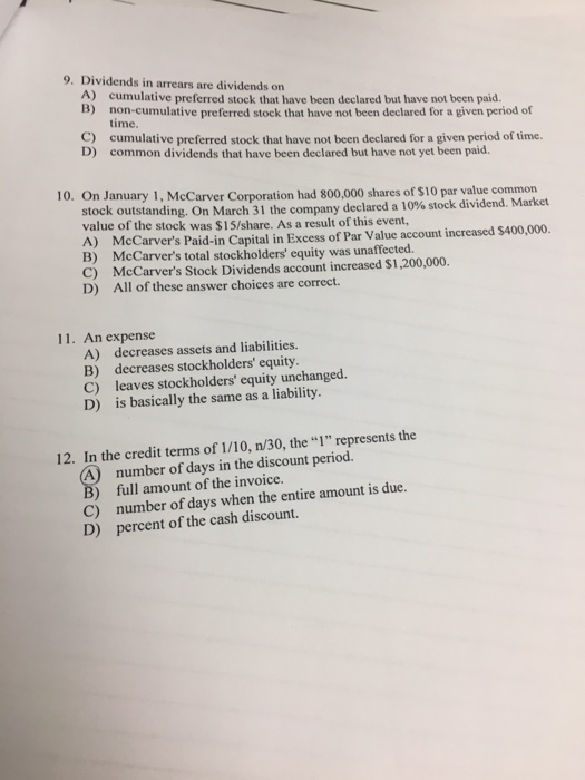 Ad Have a 500000 portfolio. D enable the preferred stockholders to share equally in corporate earnings with the common stockholders. Common dividends that have been declared but have not yet been paid.